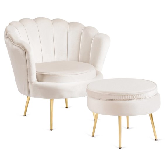 Fotel GRAND z Podnóżkiem Kremowy Welurowy