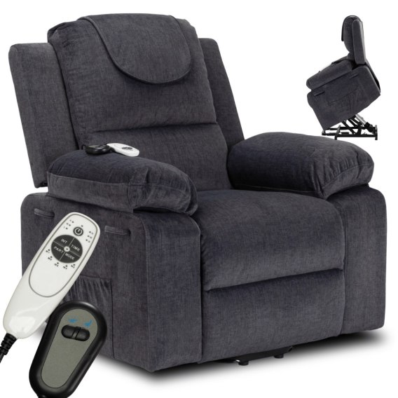 Fotel Masujący Elektrycznie Rozkładany FENIX z Funkcją Wstawania Ciemny Popiel