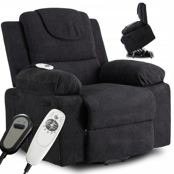 Fotel Masujący Elektrycznie Rozkładany FENIX z Funkcją Wstawania Czarny