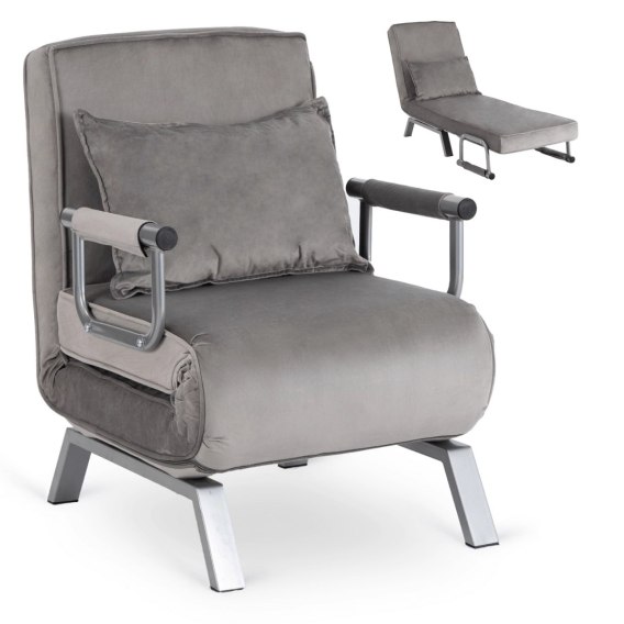 Rozkładany fotel wypoczynkowy leżanka BART welurowy w kolorze szarym