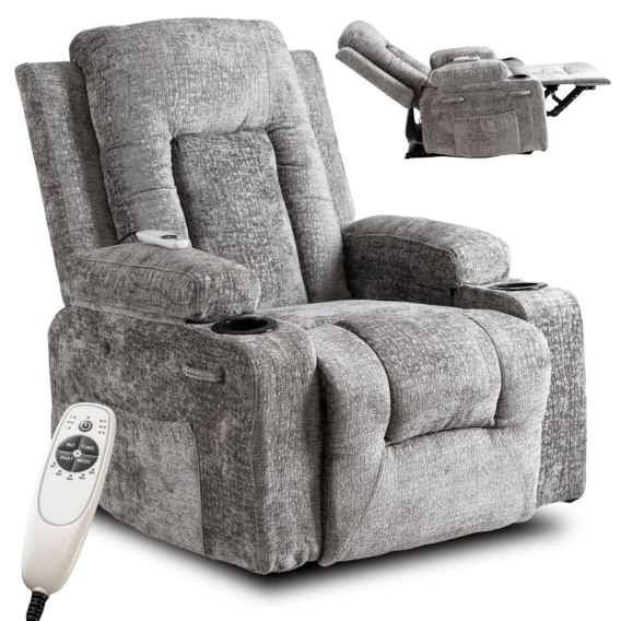 Fotel Rozkładany Masujący BOX Szary Welurowy