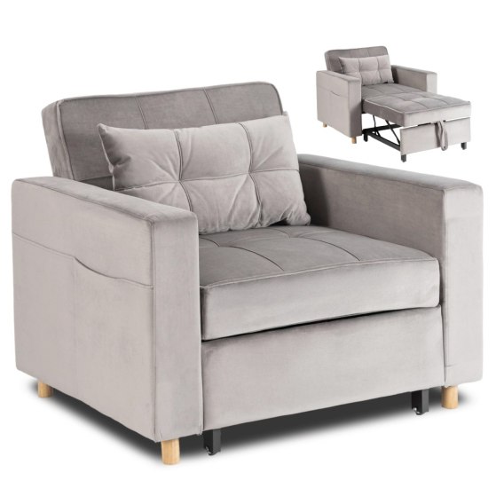 Fotel Rozkładany SOLOR Szary Welurowy