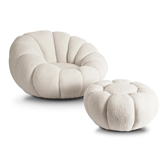 Fotel Wypoczynkowy Obrotowy PETTIT z Pufą Kremowy Boucle