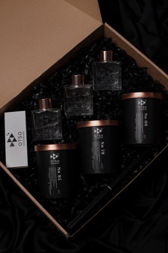 Ekskluzywny zestaw prezentowy 3 x świeca i 3 x dyfuzor W skład zestawu wchodzą: 1. Świeca sojowa o pojemności szkła 280 ml / czas palenia do 40 - 55 h 2. Świeca sojowa o pojemności szkła 280 ml / czas palenia do 40 - 55 h 3. Świeca sojowa o pojemności szkła 280 ml / czas palenia do 40 - 55 h 4. Dyfuzor zapachowy z czarnymi patyczkami poj. 100 ml 5. Dyfuzor zapachowy z czarnymi patyczkami poj. 100 ml 6. Dyfuzor zapachowy z czarnymi patyczkami poj. 100 ml 5. Zapałki Zapakowane w ekologiczne pudełko typu kraft wypełnione papierowymi ozdobnymi wiórkami. Opis zapachu: No 79 - imbirowe nuty w połączeniu z cytrusami od razu oczarują Twoje zmysły. Zwierzęce akordy skóry przeplatają się z drzewnymi nutami dodając zmysłowości. Zapach z nutką orientu i pikantnych przypraw. Bardzo męski i zmysłowy. No 85 - rozkwita egzotycznym kwiatowym akordem, który podkreślają delikatne cytrusowe, pikantne nuty bergamotki i czarnego pieprzu. Bogate serce zapachu mieni się jaśminem, tuberozą, ylang-ylang, goździkami i kwiatami pomarańczy. Na drzewno-bursztynowym tle z nutami paczuli, drewna cedrowego, wetiweru, bursztynu i piżma. Zapach inspirowany perfumami Syberian wellness. No 13 - Zapach inspirowany ekskluzywnymi perfumami Toma Forda, idealny dla miłośników bogatych i nieoczywistych kompozycji. Zmysłowe liście tytoniu doprawione są rozgrzewającymi przyprawami i ciepłą, otulającą nutą słodyczy którą daje wanilia i bursztyn. Kropką nad i jest delikatny akord limonki, który nadaje nieco lekkości całej kompozycji. No 14 - kompozycja o aksamitnym ciepłym, nieco korzenno-drzewnym zapachu z nutami drzewa sandałowego, cedru, wetiweru i paczuli na tle akordów z przypraw, bursztynu, piżma i wanilii. No 18 - zapach lekki i świeży. Dominujące nuty owocowe ananasa i marakuji, które dają słodko kwaśne akordy, uzupełnione są mlecznymi akordami kokosa, na bazie białego piżma. No 08 - akordy użyte do stworzenia tej kompozycji przez koneserów uznawane są jako luksusowe. Ciężkie i wytrawne nuty skóry, mchu dębowego i jesionu podbite są kwiatowymi akordami piwonii, irysu i fiołka. Zaś nuta głowy tworzy zaskakujące połączenie migdałów i owocowych głębokich nut śliwki z brzoskwinią.