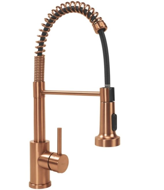 Podstawa każdej funkcjonalnej kuchni to odpowiednia bateria kuchenna. Metalowy korpus, z którego wykonany jest ten produkt, to gwarancja trwałości i stabilności baterii. Pokrycie wytrzymałą powłoką nadaje baterii odporności na zanieczyszczenia, a miedziany kolor niezwykłego wyglądu, który idealnie wpasuje się do wystroju Twojej kuchni.