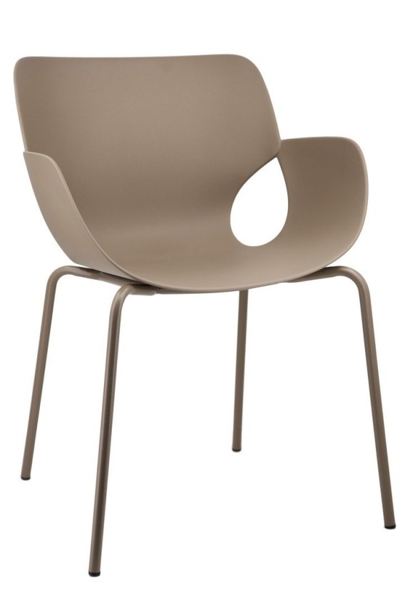 Oryginalne boczne wycięcie w siedzisku nadaje intrygującej formy, a podłokietniki zwiększają komfort siedzenia.