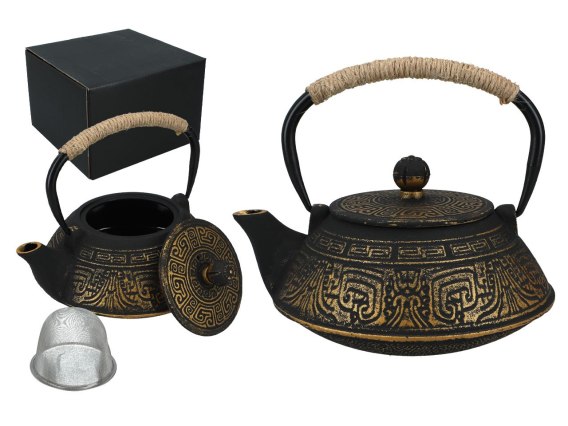 Czajniczek żeliwny z emaliowanym wkładem.