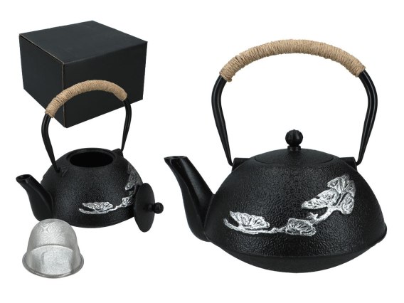 Czajniczek żeliwny z emaliowanym wkładem.