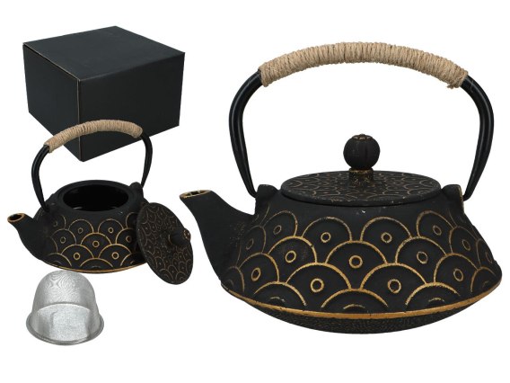 Czajniczek żeliwny z emaliowanym wkładem.