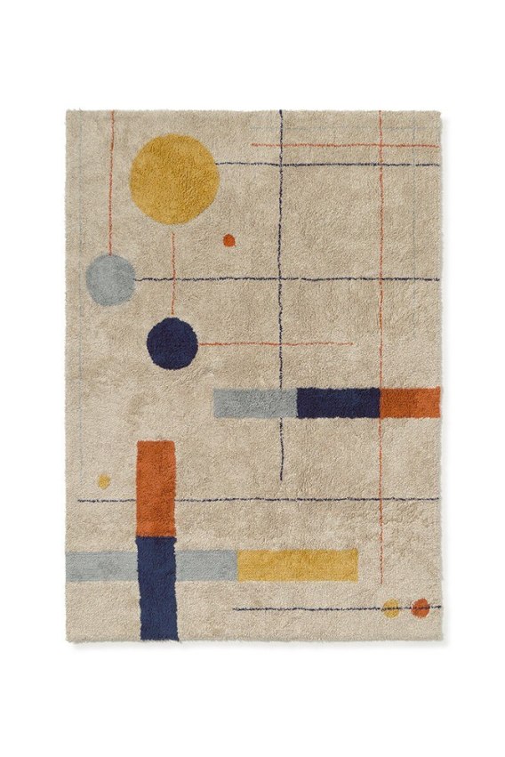 Ten wyjątkowy dywan z kolekcji Less is More to harmonijne połączenie designu, koloru i funkcjonalności. Inspirowany estetyką Bauhausu, geometryczny wzór wnosi do wnętrza nowoczesny, artystyczny akcent, a jednocześnie pozostaje przytulny i przyjazny dla dziecięcej przestrzeni.