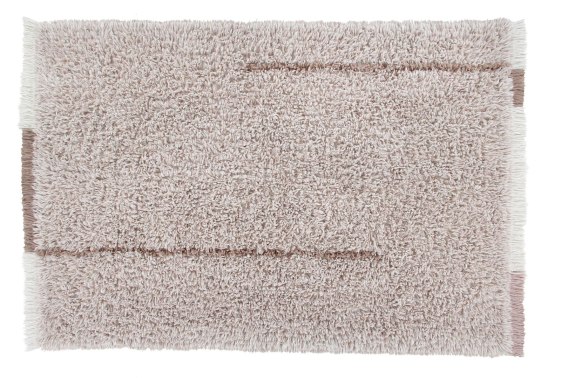 Spring Spirit Large to wełniany dywan do prania w pralce w kształcie prostokąta. Puszysty i miękki w dotyku, w modnych kolorach: Misty Rose i Natural. Całość dopełniają dwie kontrastowe linie w kolorze kwarcu. Natomiast nie równe frędzle na krawędziach nadają dywanowi styl Bohemian. Dywan ten dzięki swojej charakterystyce podkreśla moc jaką przynosi ze sobą wiosna. Niczym ta pora roku wniesie nowe życie i energię do Twojego ulubionego pomieszczenia. Wymiary: 170x240 cm