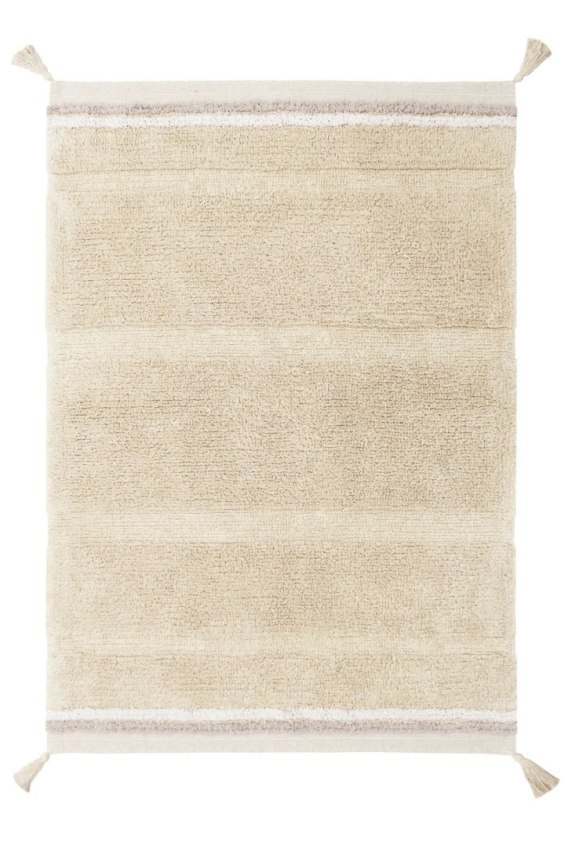 Połącz go z różnymi elementami z naszej kolekcji Fantasy Garden, aby uzyskać tematyczny wystrój pokoju dziecięcego lub użyj go samodzielnie w pozostałej części domu, ponieważ dzięki delikatnym, neutralnym kolorom łatwo wkomponuje się w każdą przestrzeń. Ten bawełniany dywan do prania w pralce jest dostępny w trzech wersjach kolorystycznych, od naturalnej beżowej niefarbowanej bawełny po rumiany róż i złocistożółty. Możesz wybierać spośród różnych rozmiarów i zobaczyć, który najlepiej pasuje do Twojej przestrzeni. Projekt ma jednobarwną powierzchnię z subtelnie zmieniającą się wysokością runa, która nadaje mu prążkowaną teksturę. Krawędzie wykończone są gołym płótnem z kontrastowymi haftowanymi paskami i frędzlami na każdym rogu.