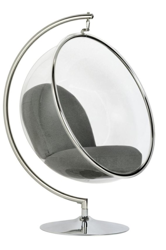 Fotel BUBBLE STAND poduszka szara - podstawa chrom, korpus akryl, poduszka wełna
