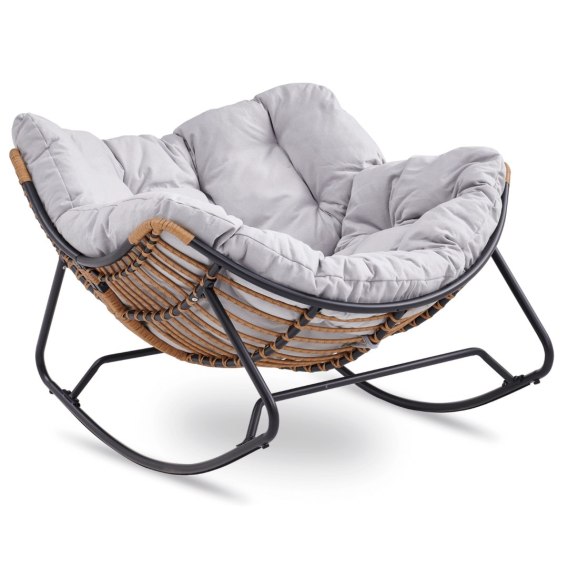 Marzysz o chwili tylko dla siebie? Fotel Elton w subtelnym, szarym kolorze powstał właśnie z myślą o takich momentach. Wystarczy usiąść, by poczuć, jak łagodny ruch bujania koi zmysły, a miękka, solidna poducha otula ciało przyjemnym komfortem. To Twoje miejsce na reset - bez rozpraszaczy, bez pośpiechu, tylko spokój i Ty.