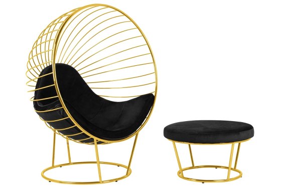 Fotel GABBIA STAND z podnóżkiem złoty - welur, stal.
