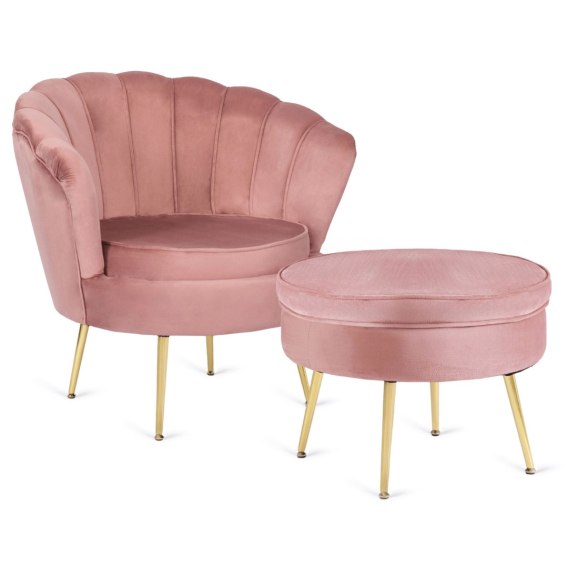 Fotel GRAND z Podnóżkiem Różowy Welurowy