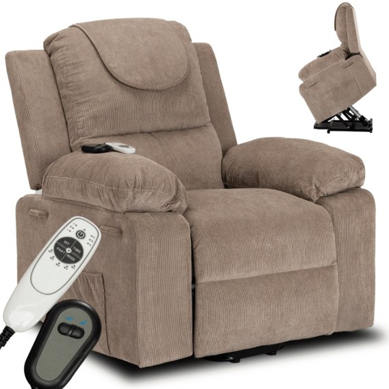 Fotel Masujący Elektrycznie Rozkładany FENIX z Funkcją Wstawania Beżowy