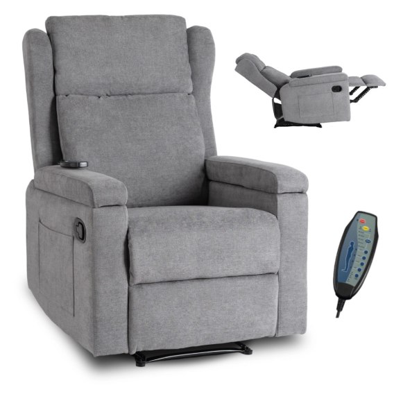 Fotel Rozkładany Masujący SEBASTIAN Szary Tkanina