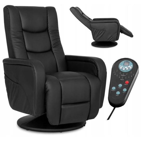 Fotel Rozkładany Obrotowy Masujący z Podnóżkiem SPIKE Czarny Ekoskóra Nowoczesny