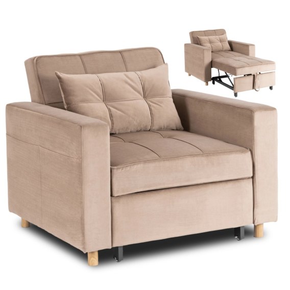 Fotel Rozkładany SOLOR Beżowy Welurowy
