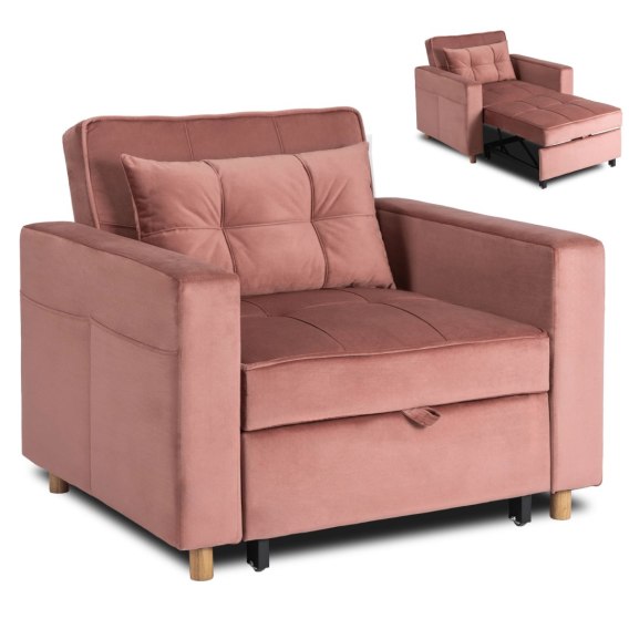 Fotel Rozkładany SOLOR Różowy Welurowy