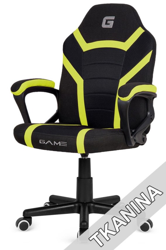 Fotel obrotowy do biurka oraz dla gracza model MARIO, tapicerowany czarno- zieloną tkaniną. Ergonomicznie wyprofilowane oparcie, marka Lugano.