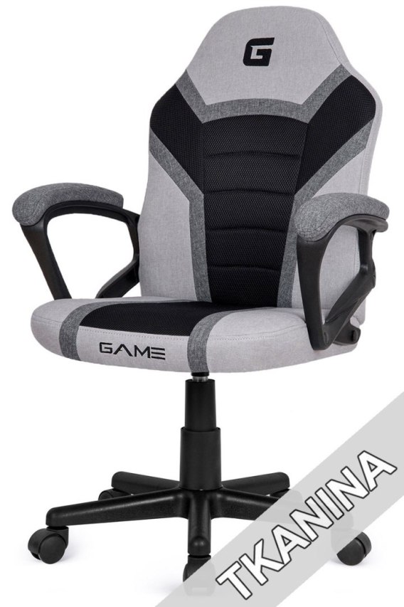 Fotel obrotowy do biurka oraz dla gracza model MARIO, tapicerowany szarą tkaniną. Ergonomicznie wyprofilowane oparcie, marka Lugano.