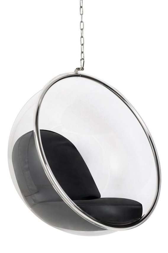 Fotel wiszący BUBBLE poduszka czarna - korpus akryl, poduszka ekoskóra