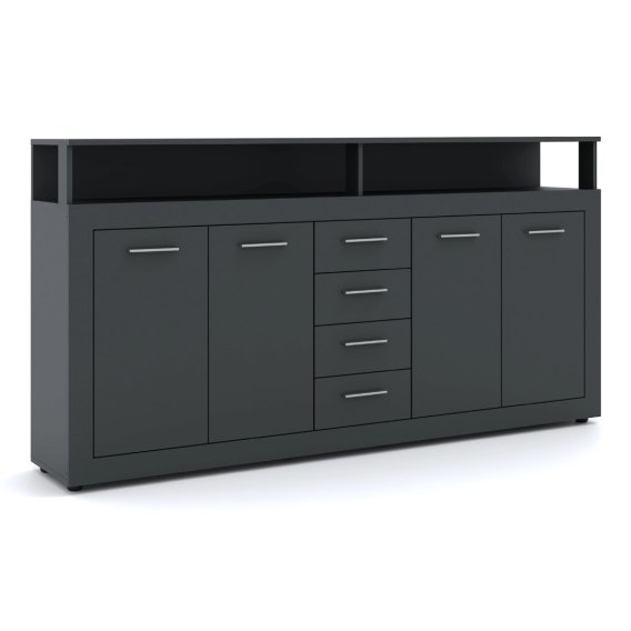 Komoda Czterodrzwiowa z Szufladami BLAGO 190 cm Antracyt Nowoczesna