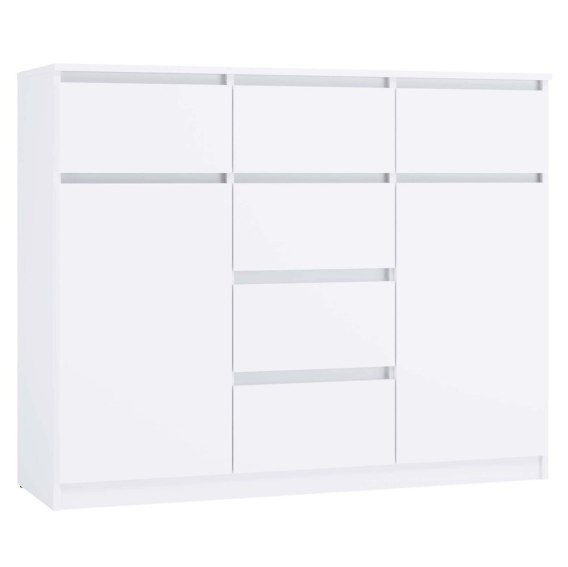 • Uniwersalny design: Prosta, elegancka forma komody w kolorze biel mat sprawia, że będzie pasować zarówno do nowoczesnych, jak i klasycznych aranżacji wnętrz. Bezuchwytowe fronty podkreślają minimalistyczny charakter, jednocześnie zapewniając wygodę użytkowania.