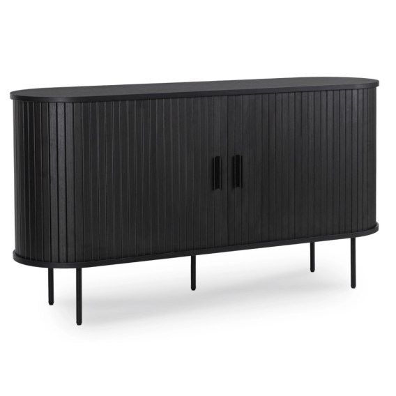 Komoda do Salonu Rozsuwana TRISH 140 cm Czarna Dwudrzwiowa Ryflowana Nowoczesna