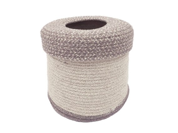 Uroczy mały kosz na śmieci wykonany z... przędzy pochodzącej z recyklingu! Ten praktyczny kosz ze zdejmowaną pokrywą z otworem pośrodku jest wykonany z plecionych sznurków z przędzy z recyklingu z naszych ścinków tekstylnych, połączonych ze sznurkami z wyłącznie naturalnej niefarbowanej przędzy bawełnianej.