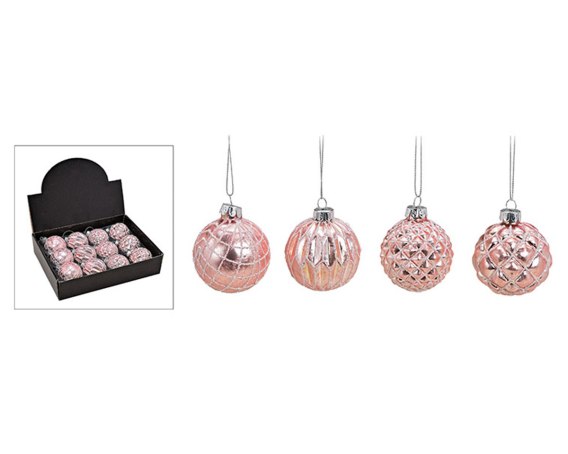 Kpl. 12 różowych szklanych bombek 6cm