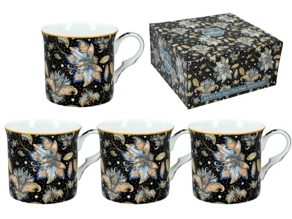 Zestaw czterech porcelanowych kubków o pojemności 295ml, każdy z unikalną kwiatową ilustracją. Kubki są trwałe, wygodne i idealne do codziennego użytku. Kubeczki wyprodukowane z wysokiej jakości ceramiki, co sprawia, że są nie tylko piękne, ale także trwałe i praktyczne. Idealne do codziennego użytku lub na specjalne okazje.