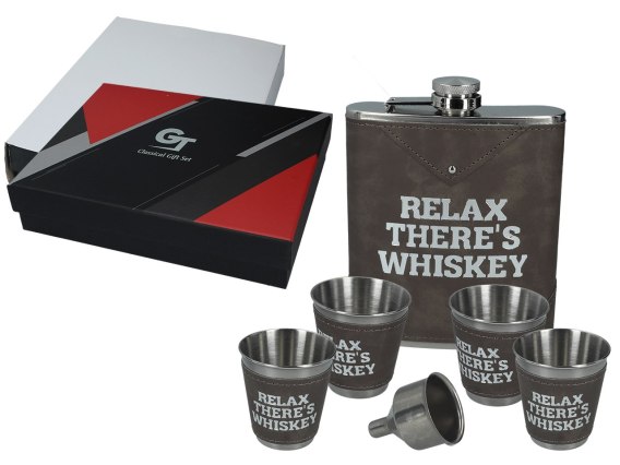 Kpl. piersiówka z lejkiem i 4 kieliszkami