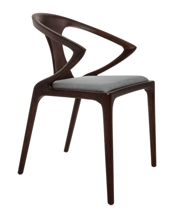 Wykonane w całości z litego drewna orzechowego, cechuje się trwałością i naturalnym pięknem, które dopełnia szara poducha zapewniająca komfort siedzenia.