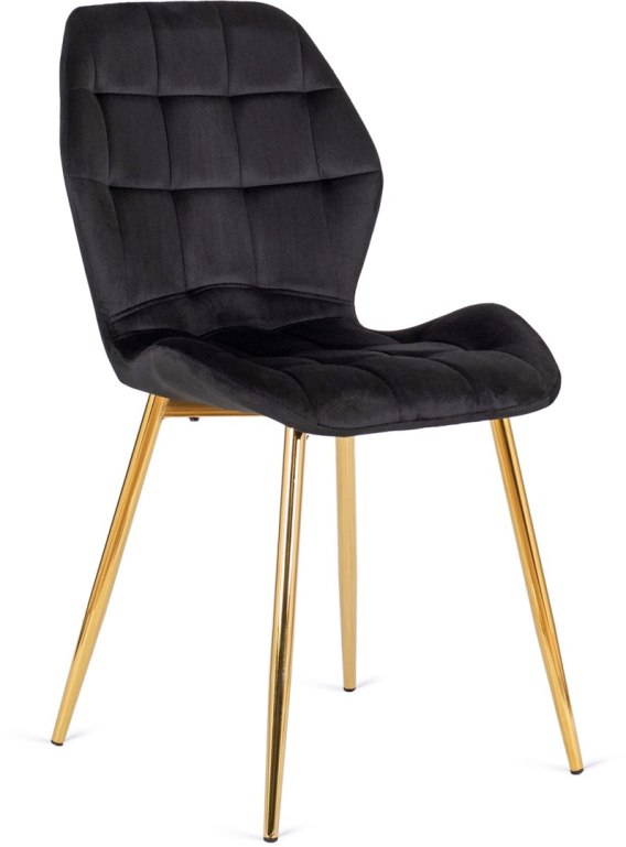 Krzesło LUCKY Czarne ze Złotymi Nogami Welurowe