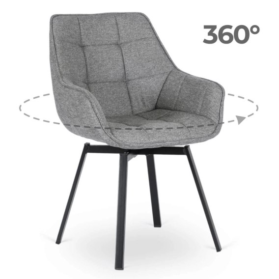Krzesło Tapicerowane Obrotowe do Salonu LUNA 2 Szare Nowoczesne Loft