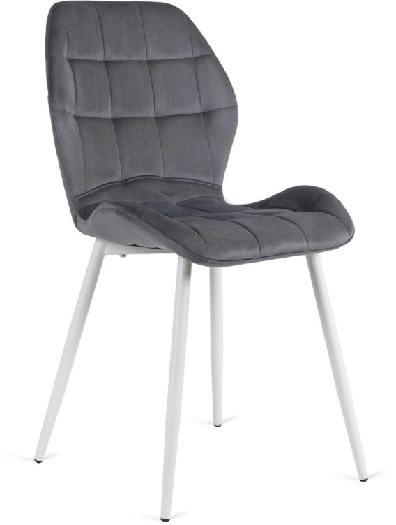 Krzesło Tapicerowane do Jadalni LUCKY Szare z Białymi Nogami Welurowe Nowoczesne - szczegóły Krzesło Tapicerowane do Jadalni LUCKY Szare z Białymi Nogami Welurowe Nowoczesne - szczegóły
