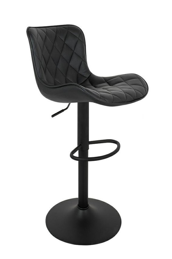 Wyprofilowane siedzisko wykonano z czarnej skóry PU o pikowanym zdobieniu, co nadaje elegancki i nowoczesny wygląd.