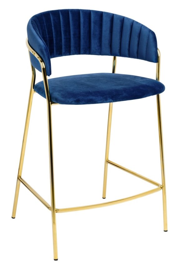 Krzesło barowe MARGO 65 ciemny niebieski - welur, podstawa złota