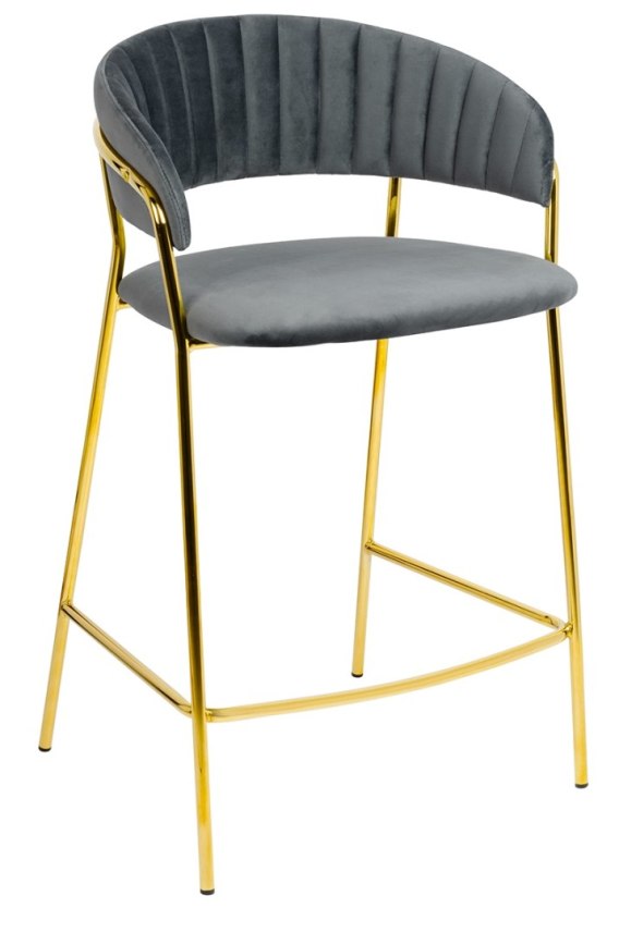 Krzesło barowe MARGO 65 ciemny szary - welur, podstawa złota