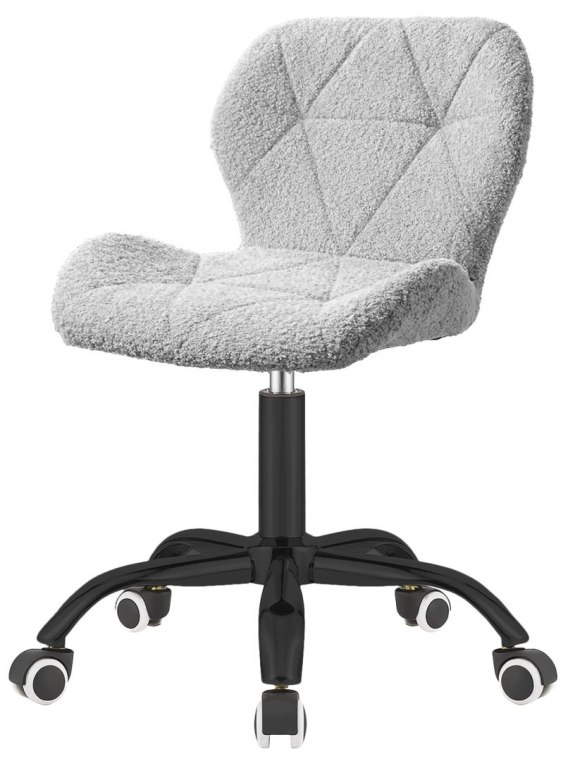 Krzesło obrotowe do biurka w kolorze szarym, model VASTO OFFICE BOUCLE z metalową czarną podstawą.