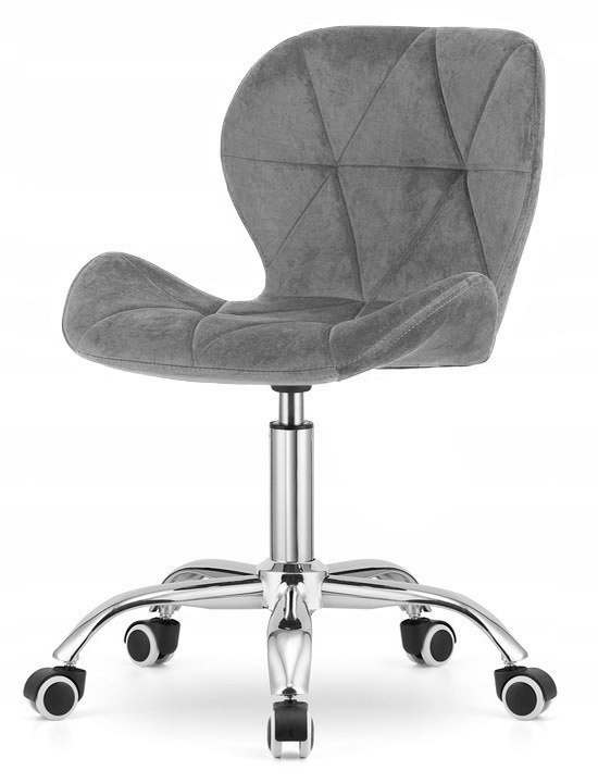 Krzesło obrotowe do biurka w kolorze ciemno szarym, model VASTO OFFICE VELVET z metalową chromowaną podstawą w kolorze srebrnym.