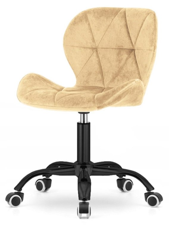 Krzesło obrotowe do biurka w kolorze beżowym, model VASTO OFFICE VELVET z metalową chromowaną podstawą w kolorze czarnym.