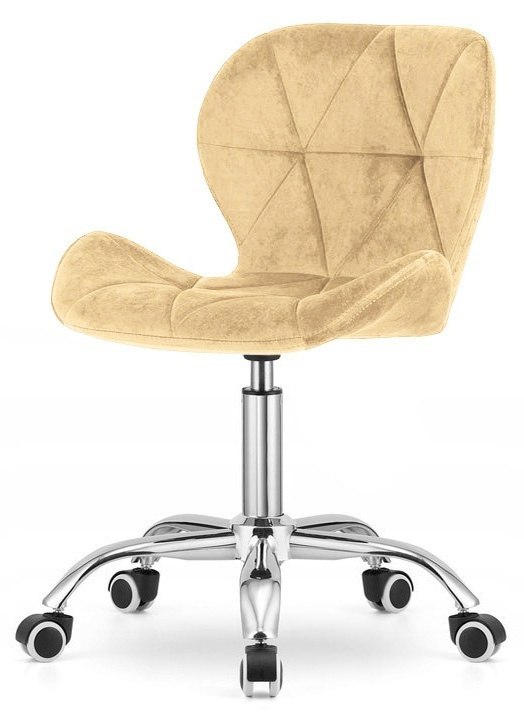 Krzesło obrotowe do biurka w kolorze beżowym, model VASTO OFFICE VELVET z metalową chromowaną podstawą w kolorze srebrnym.