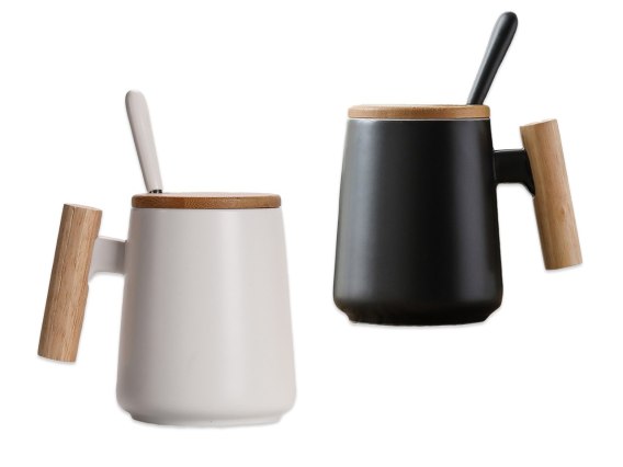 Kubek z drewnianą przykrywką, rączką i łyżeczką (mix 2 kolorów)
