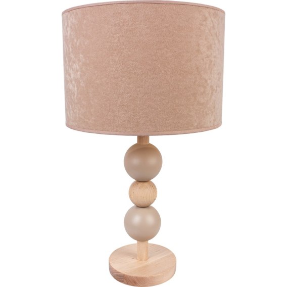 Lampka nocna z serii BOLLA to propozycja oświetlenia, które ma za zadanie doświetlić pomieszczenie. Dedykowana jako lampka do salonu, na komodę jak i jako lampka nocna do sypialni, pokoju gościnnego czy pokoju dziecięcego. Gdy główne światło w pokoju jest wyłączone,  lampka nocna doświetli pokój przyjemnym światłem. Nietypowy kształt podstawy lampy wykonanej z drewna przykuje uwagę gości jako piękna dekoracja oraz ociepli i u przytuli wnętrze pomieszczenia. Uroku lampie dekoracyjnej stojącej nadaje zamszowy abażur w kolorze beżowym, który wewnątrz posiada złotą folię.