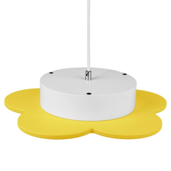 Lampa wisząca dziecięca to propozycja nowoczesnego oświetlenia led do pokoju dziecka. Z myślą o najmłodszych klientach przygotowaliśmy kolorowy wzór żyrandolu do pokoju dziewczynki z motywem kwiatuszka. Oświetlenie posiada kształt kwiatu i jest pokryty wodnymi farbami w kolorze żółtym z elementami koloru białego które rozświetlą pokój dziecka, przyciągną pięknym wyglądem, a ponad to spełnią również swoje funkcje i odpowiednio oświetlą nam przestrzeń. Lampa wisząca dla nastolatki wykonana została z drzewa, co czyni ją mocną i trwałą na lata oświetleniem. Punkt świetlny w lampie wiszącej dla dziewczynki został ukryty pod białą pleksi (okrąg na środku lampy) - światło bardzo ładnie przechodzi przez ten materiał, i daje dużo światła w pokoju dziewczęcym. Ta ciekawa propozycja lampy zwis zapewni wystarczającą ilość światła, aby oświetlić pokój dziewczynki.