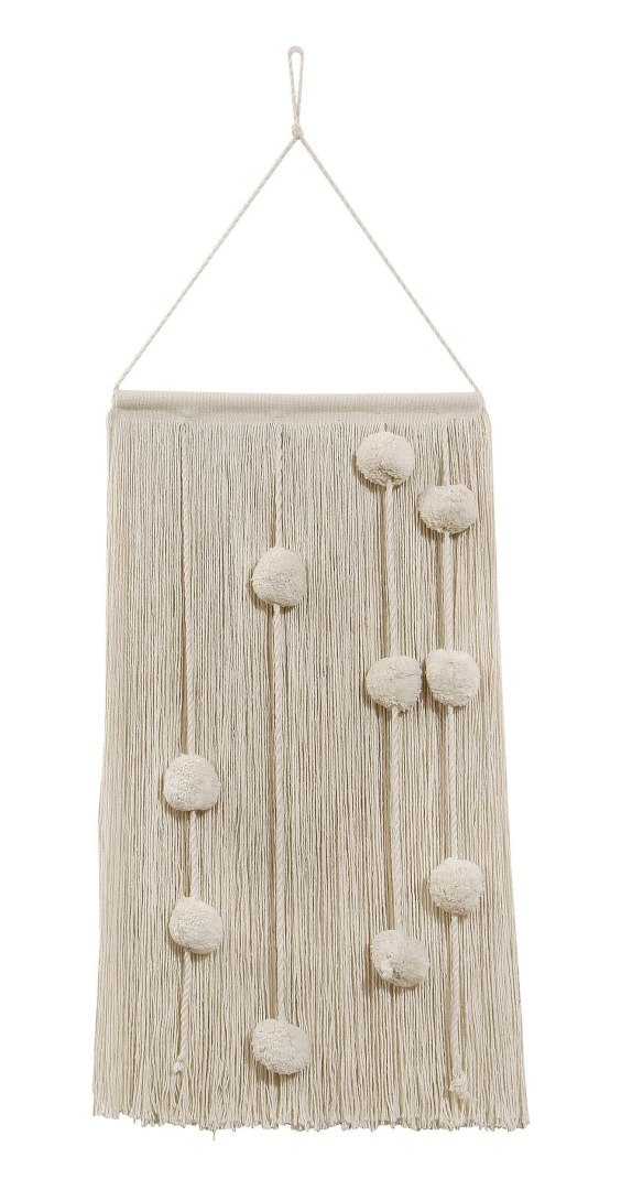 Dół dekoracji wykonany jest z przędzy bawełnianej tworzącej długie frędzle, takie jak kurtyna. Aby mieć wrażenie, że jesteśmy w polu bawełny, kulki zostały włączone do tej samej przędzy bawełnianej, o różnych długościach, dodając świeży i naturalny dotyk do dekoracji pokoju